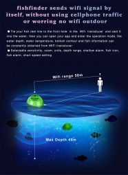 - Работает эхолот беспроводной Lucky Fish Finder FF718LiCD на глубинах до 100 метров (минимально 0,6 м);